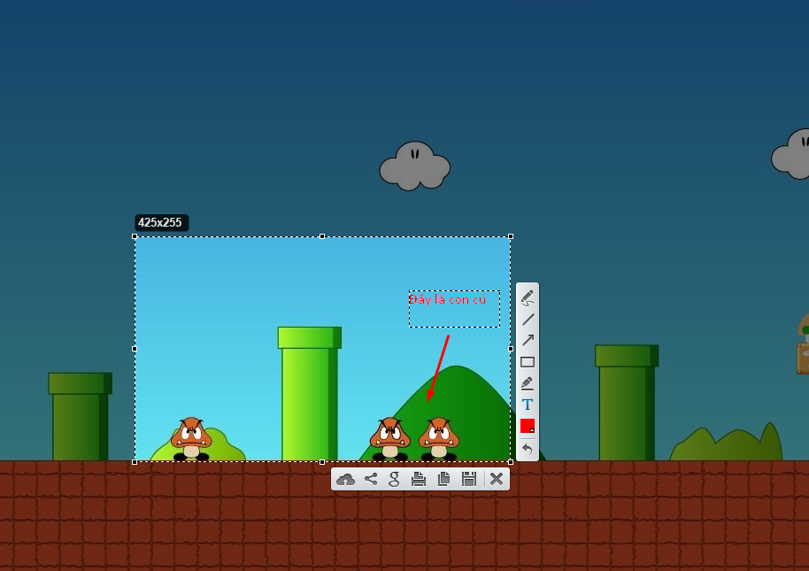 Ở trong cửa sổ làm việc với Paint này, các bạn có thể lựa chọn việc cắt từng vùng ảnh mà bạn muốn, thêm các kí tự hình ảnh, thêm các đoạn text ghi chú....