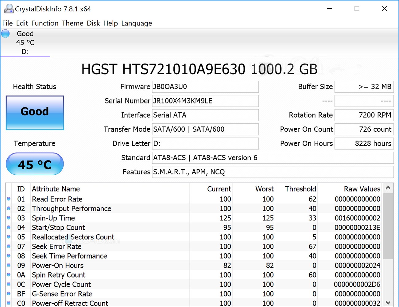 Đây là phần thông tin quan trọng nhất bạn cần chú ý khi kiểm tra sức khỏe ổ cứng. Tốt nhất bạn chỉ nên sử dụng tiếp khi có thông báo Good. Còn lại những cảnh báo vàng hay đỏ tốt nhất bạn không nên tiếp tục sử dụng.