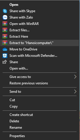 Đầu tiên, click chuột phải vào file RAR đã nén. Sau đó bạn có thể chọn một trong các cách giải nén file dưới đây :