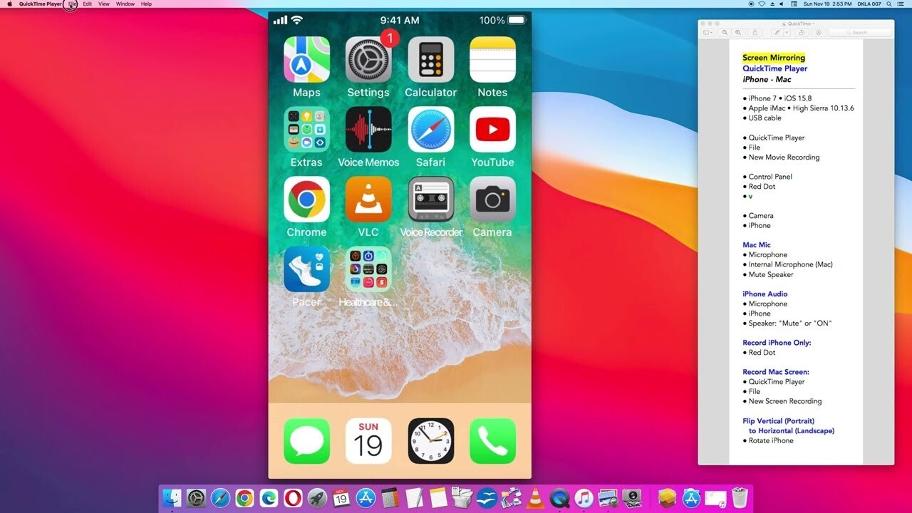 - Để dừng, đóng QuickTime Player hoặc ngắt kết nối cáp.