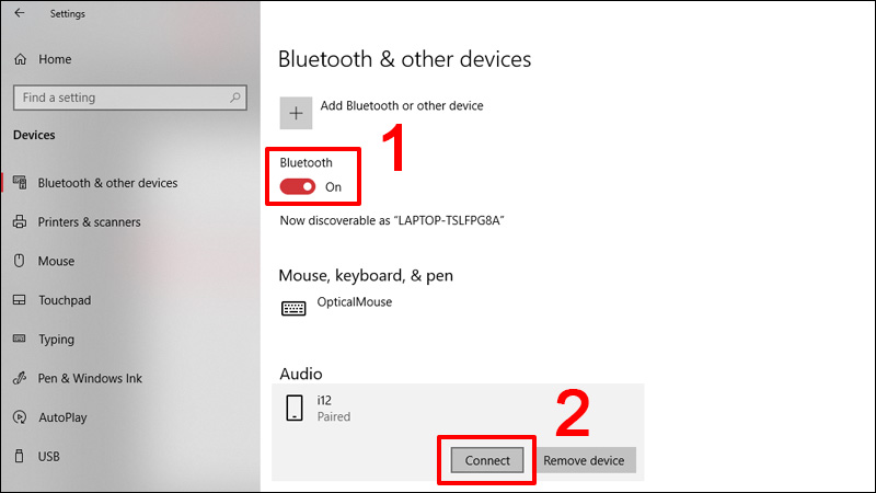 Bước 4: Sau đó ghép nối tai nghe bluetooth với máy tính.
