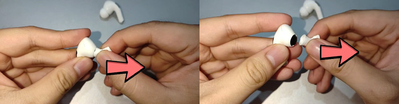 – Bước 1: Kéo nhẹ để gỡ núm đệm tai nghe AirPods Pro