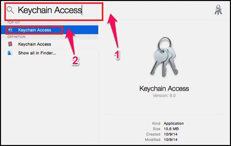 Bước 1: Bạn mở Keychain Access bằng cách nhập từ khóa Keychain Access vào công cụ tìm kiếm trên Mac và click chọn.