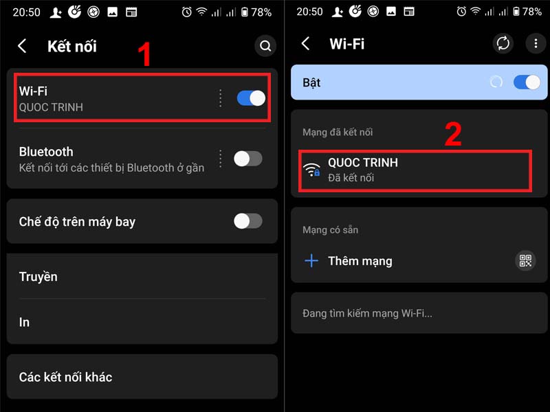 Bước 2: Trong phần Kết nối bạn chọn Wi-Fi > Chọn WiFi đã kết nối.