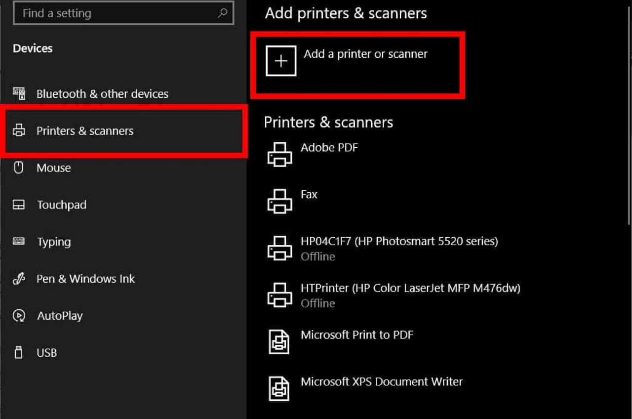 + Trên máy tính cần kết nối, vào Settings > Printers & Scanners, chọn Add a printer or scanner.