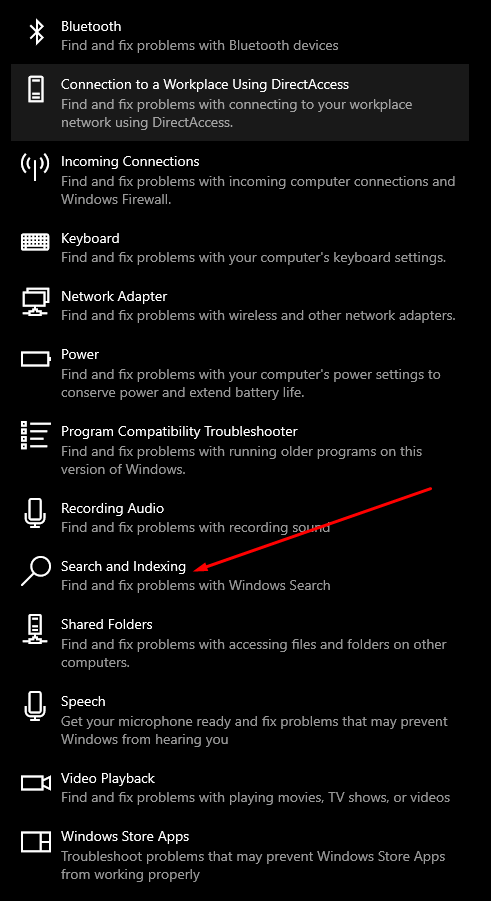 Trong cửa sổ Troubleshooting, chọn ứng dụng Camera hoặc chọn Search anh Indexing để Window tự động tìm và sửa lỗi