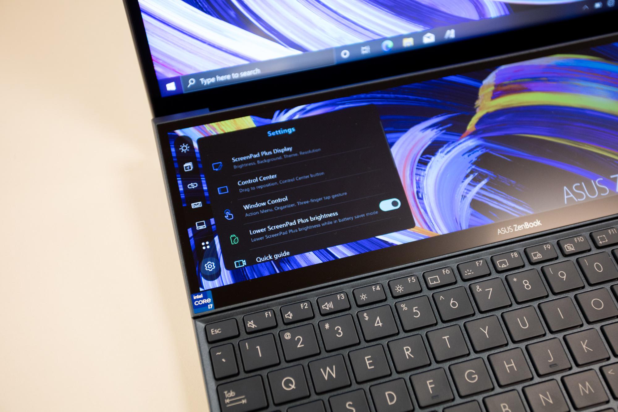 Quay trở lại với điểm nhấn chính của ZenBook Duo 14 2021: Chiếc máy này có 2 màn hình, một chính như thường thấy và một nằm phía trên bàn phím. Đây là thứ khiến cho laptop này được mệnh danh là "dành cho tương lai".