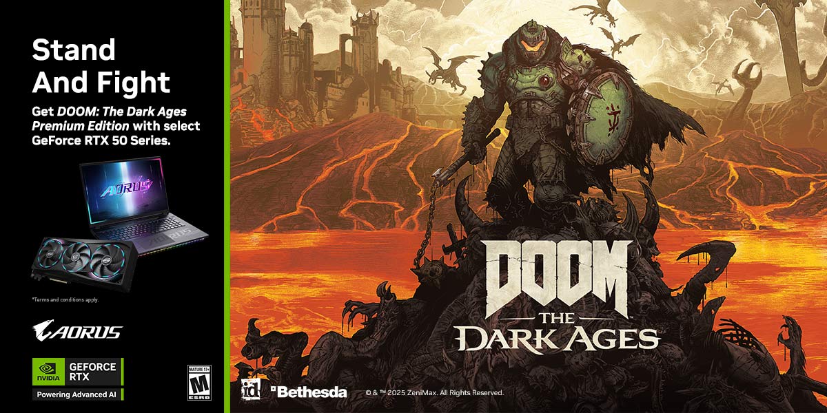 - Ưu đãi hấp dẫn: Mua card đồ họa GIGABYTE RTX 5070 Series hoặc cao hơn, nhận ngay code game DOOM: The Dark Ages Premium Edition (trị giá 2.000.000 VNĐ).