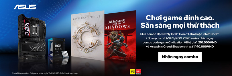 Mua combo Bộ vi xử lý Intel® Core™ Ultra hoặc Intel® Core™ + Bo mạch chủ ASUS/ROG Z890 series bất kì (Prime/ TUF/ ProArt/ ROG) nhận ngay code game Civilization VII trị giá 1,210,000đ và Assasin's Creed Shadows trị giá 1,190,000đ.