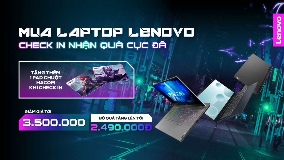 Khi khách hàng mua Laptop Lenovo tại HACOM, check in tại booth nhận ngay quà tặng là bàn di chuột HACOM (PADM635) cực chất.