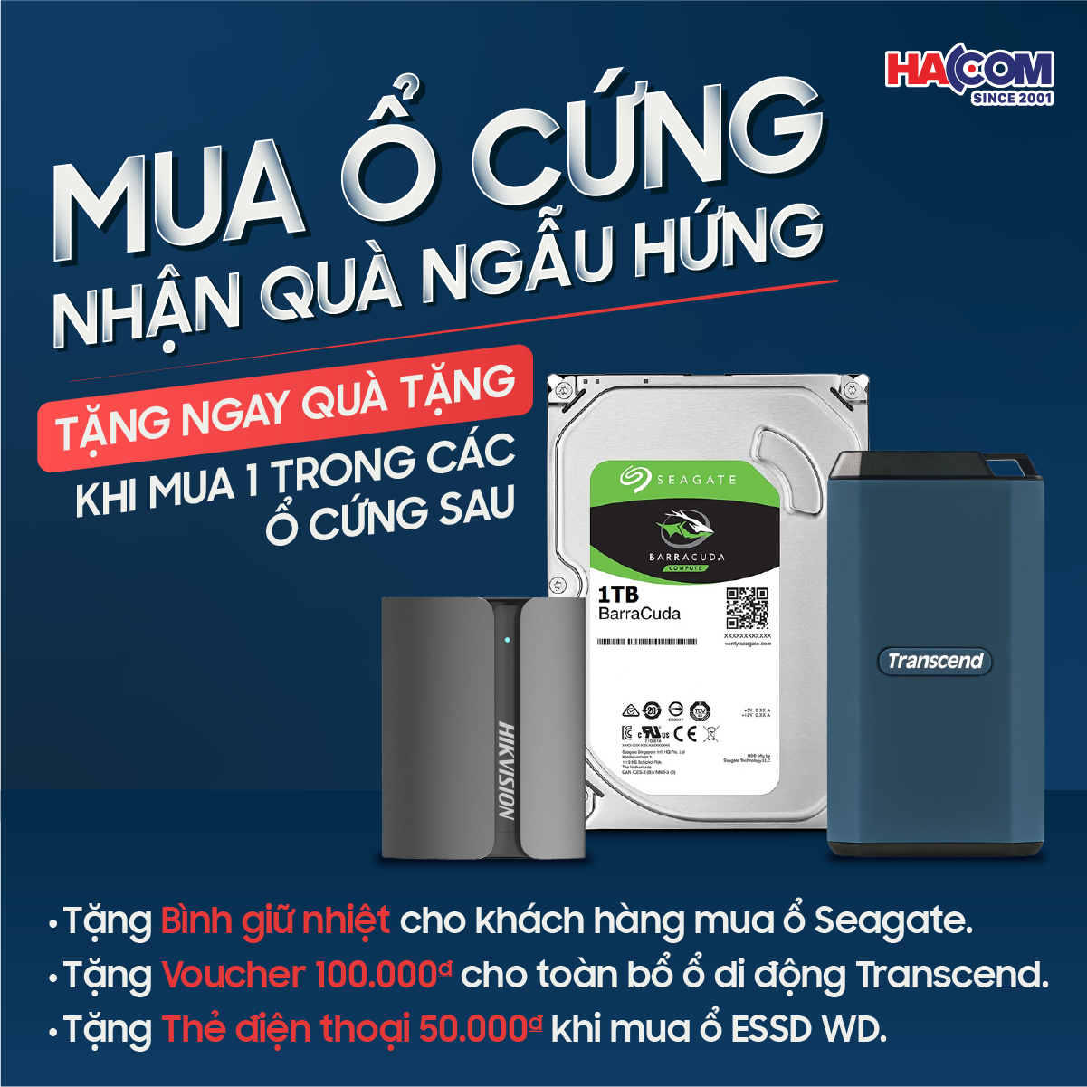 Trong tháng 11 này ,khi mua ổ cứng di động thuộc một trong 3 thương hiệu Seagate, Transcend hoặc các loại ổ ESSD, Quý khách hàng sẽ nhận được quà tặng tương ứng như sau: