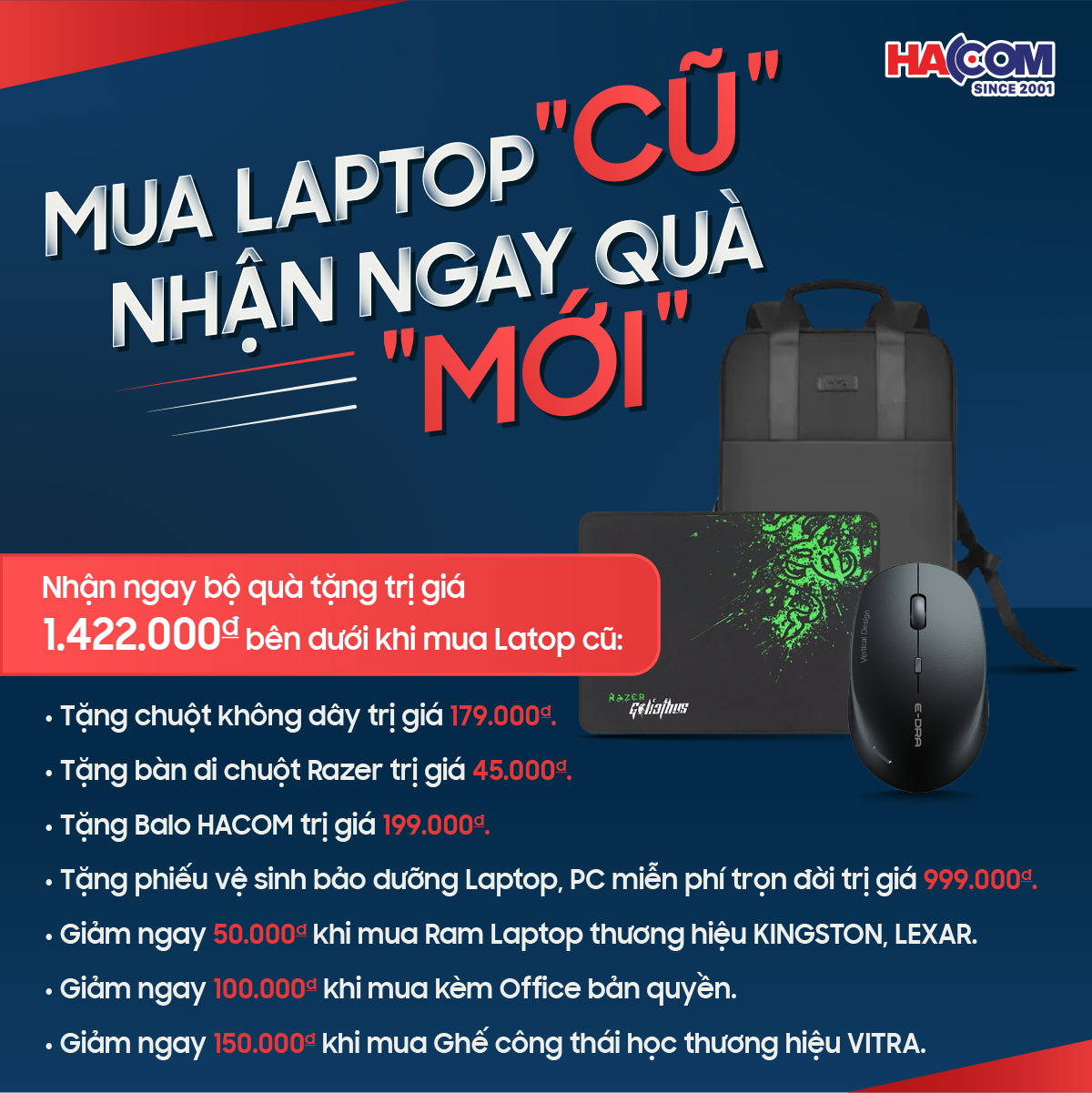 Nhận ngay bộ quà tặng trị giá 1.422.000đ bên dưới khi mua Latop cũ: