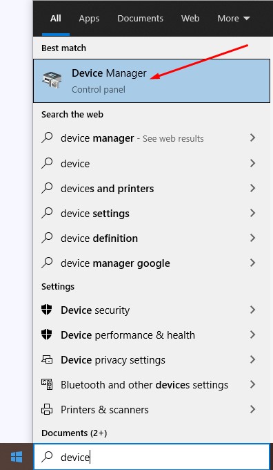 Bước 1 : Trên Win 10, nhập vào ô tìm kiếm hoặc gõ vào Device > Tìm và chọn mục Device Manager