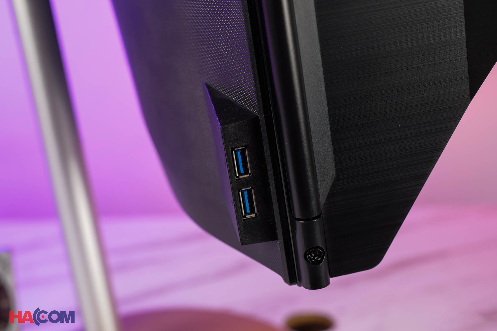 CP3271K trang bị nhiều cổng xuất hình tiên tiến hiện tại. Bao gồm hai cổng HDMI, hai DisplayPort. Màn hình cũng có thể kết nối với các thiết bị ngoại vi như phím chuột, tai nghe, ổ cứng cắm ngoài qua các cổng bốn cổng USB 3.0 ( hai phía sau và hai bên cạnh). Thế nhưng điều đáng tiếc là cổng Type-C không được tích hợp sẵn trên màn. Khi mà các dòng màn hình mới hiện tại luôn có tính năng USB Power Delivery - vừa xuất hình qua đó, vừa có thể sạc được thiết bị. Phần cổng kết nối với màn được che chắn bởi một tấm nhựa có thể tháo rời. Tuy nhiên người dùng nên cẩn thận, bởi chất liệu nhựa được gia công tương đối mỏng, nếu mạnh tay khi lắp vào màn sẽ bị gãy.