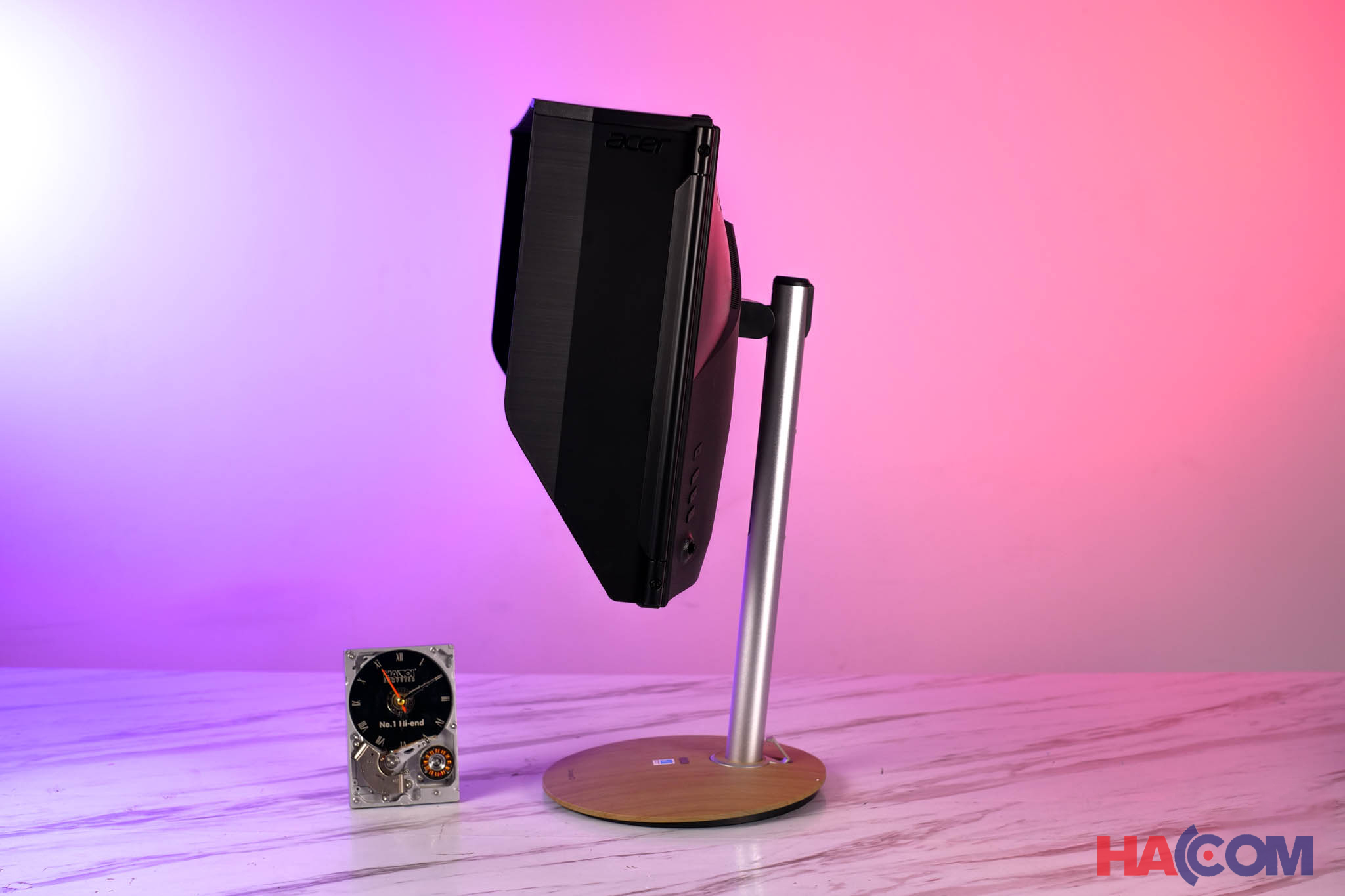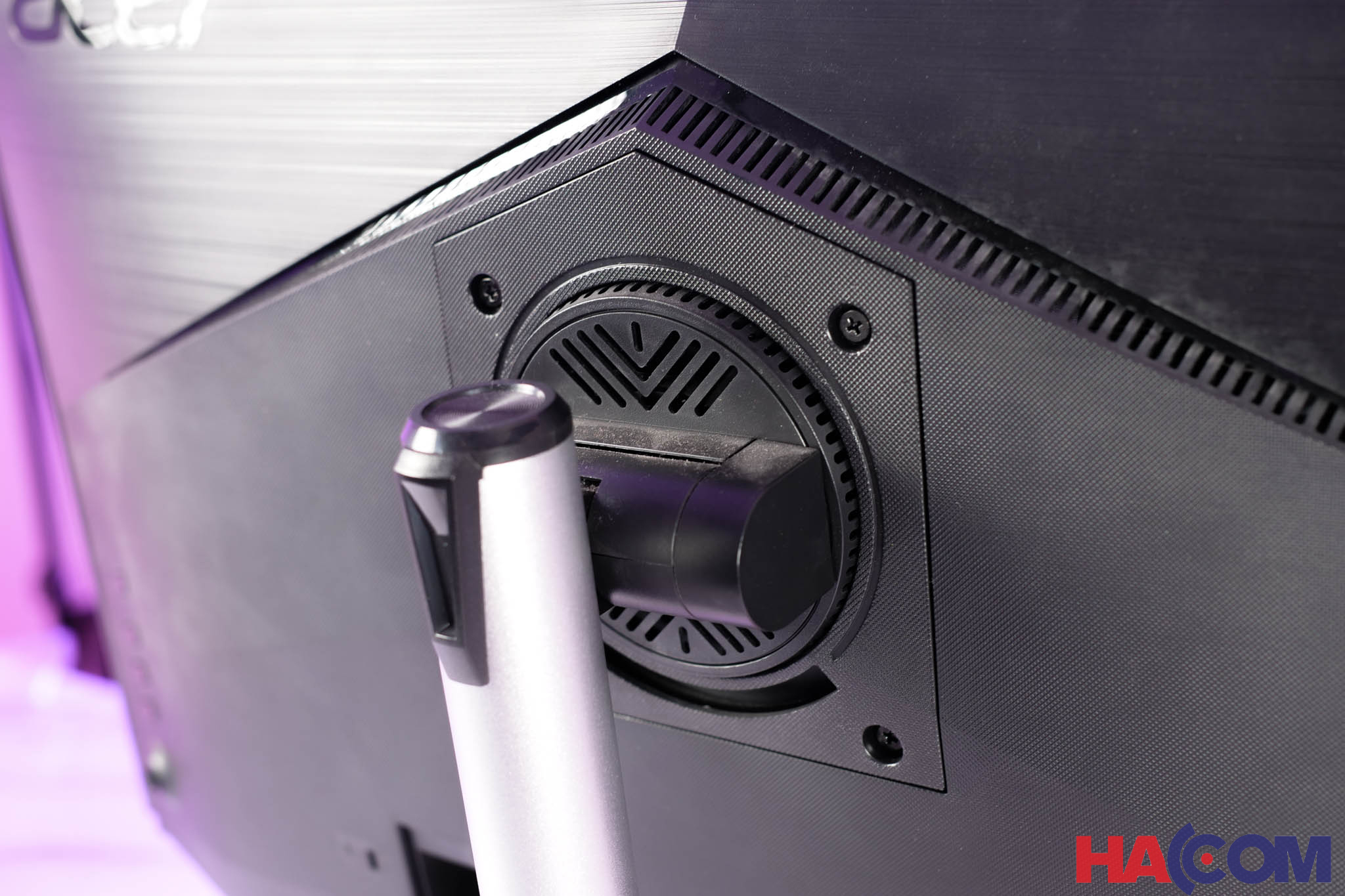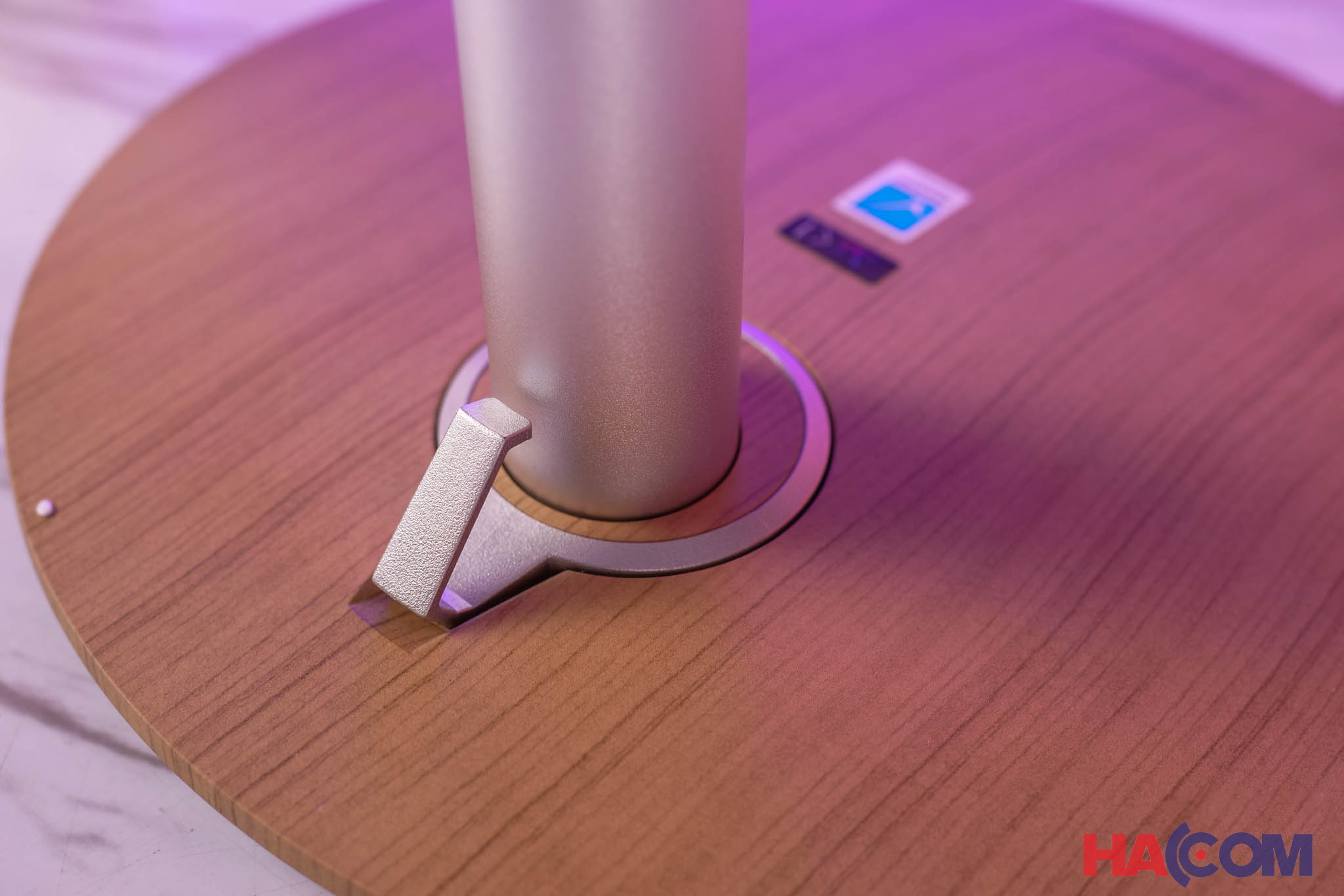 Qua vài lần điều chỉnh độ cao, thử nghiệm với các tính năng xoay dọc. Chân đế khá chắc chắn, ổn định, hiện tượng chao đảo diễn ra rất ít. Việc tùy chỉnh độ cao tương đối mượt mà hơn khi xoay dọc màn. Cảm giác khi xoay dọc có cảm giác không được trơn tru. Cũng có thể một phần do các khớp xoay có các khấc nhỏ giữ màn hình ở các tư thế khác nhau.