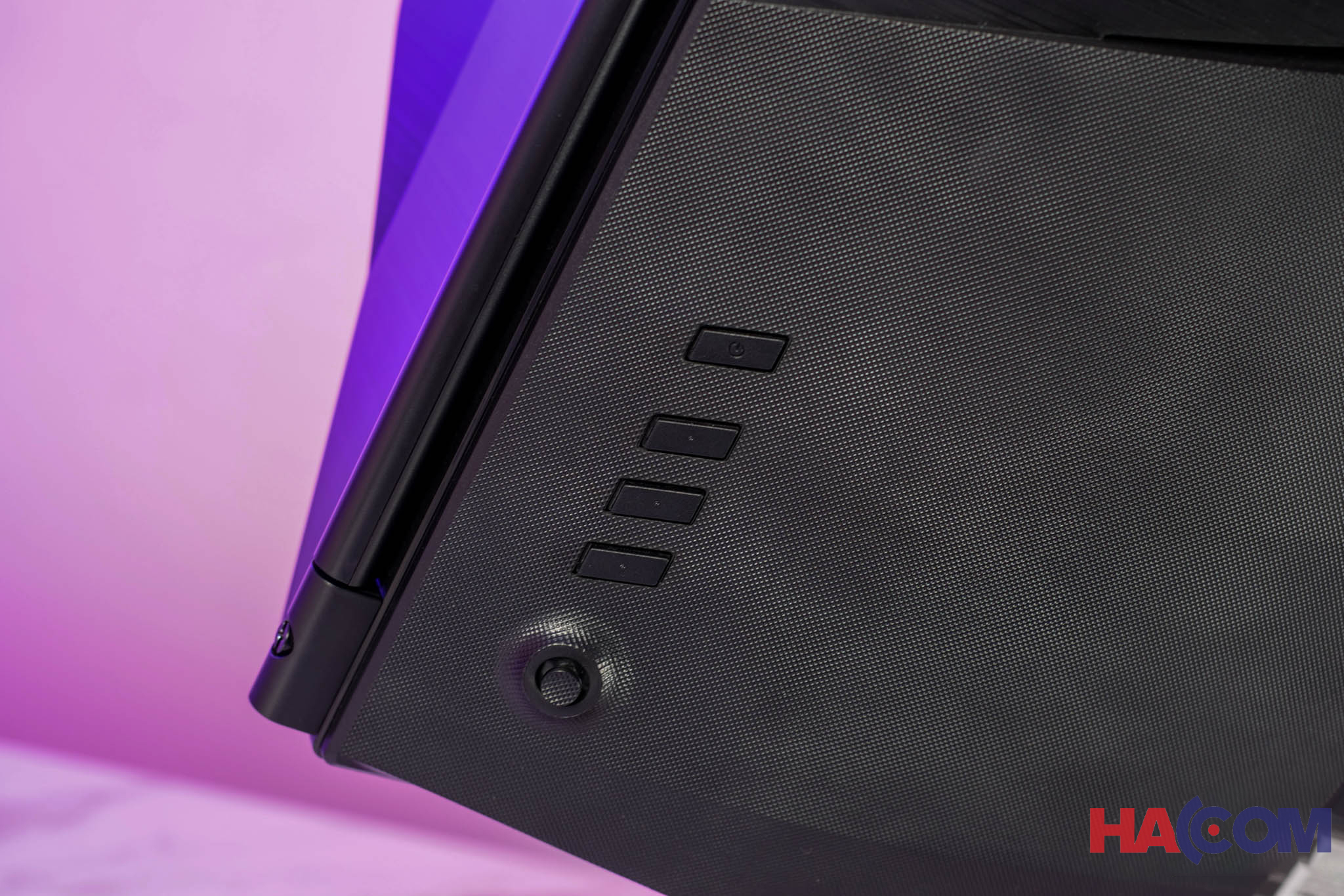 Dải nút bấm, điều khiển được đặt ở phía sau góc phải màn hình. Giao diện menu trực quan, dễ dàng điều chỉnh độ sáng tối, chuyển đổi chế độ tối ưu sRGB, DCI-P3, HDR một cách nhanh chóng. Chưa kể đến ngoài những phụ kiện thông thường là dây kết nối, nguồn thì màn còn có thêm tấm che ánh sáng. Điều này chỉ có ở trên những màn hình chuyện dụng cho công việc sáng tạo nội dung hay chỉnh sửa hậu kì. Giúp nội dung hiển thị tốt hơn trong môi trường ánh sáng xung quanh quá chói. Thêm nữa là nó còn che chắn màn hình không bị phản xạ ánh sáng. Cho dù màn hình cũng được sử dụng một lớp phủ mờ giảm bớt hiện tượng này.