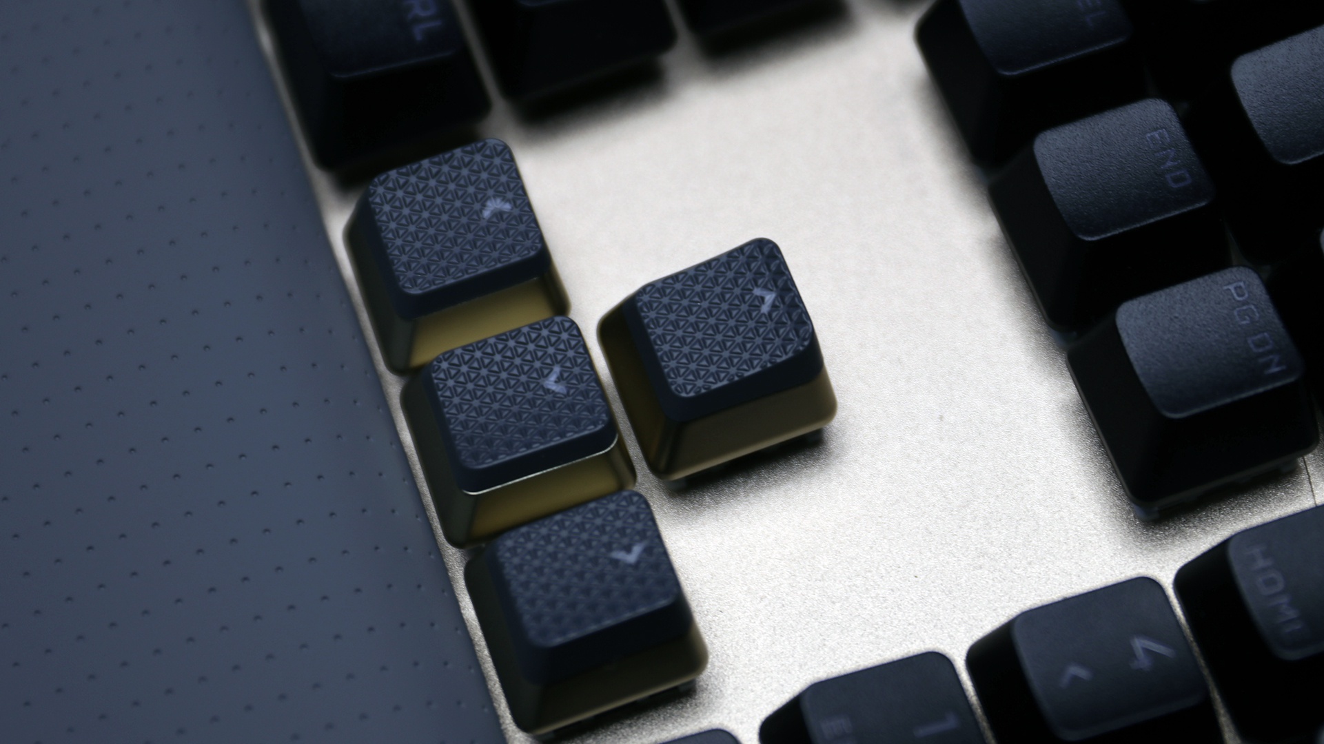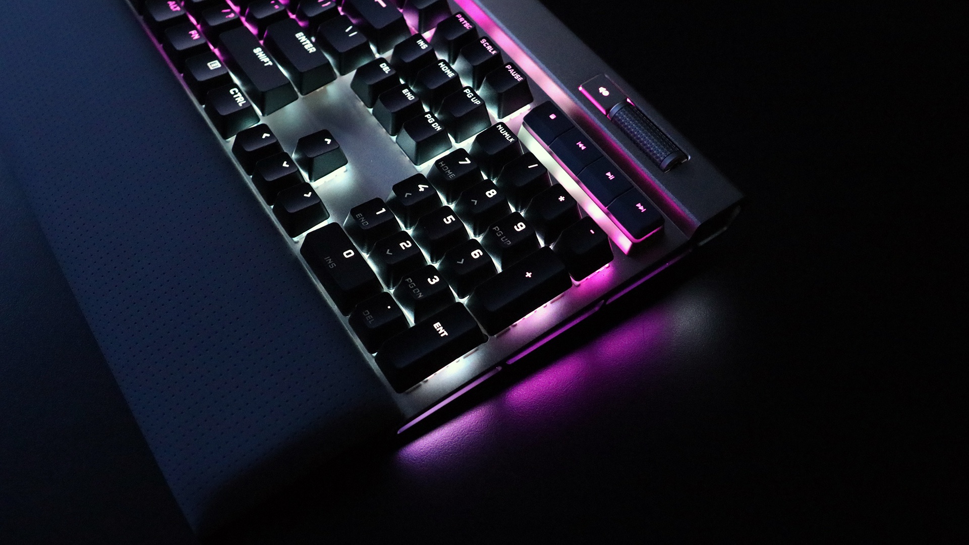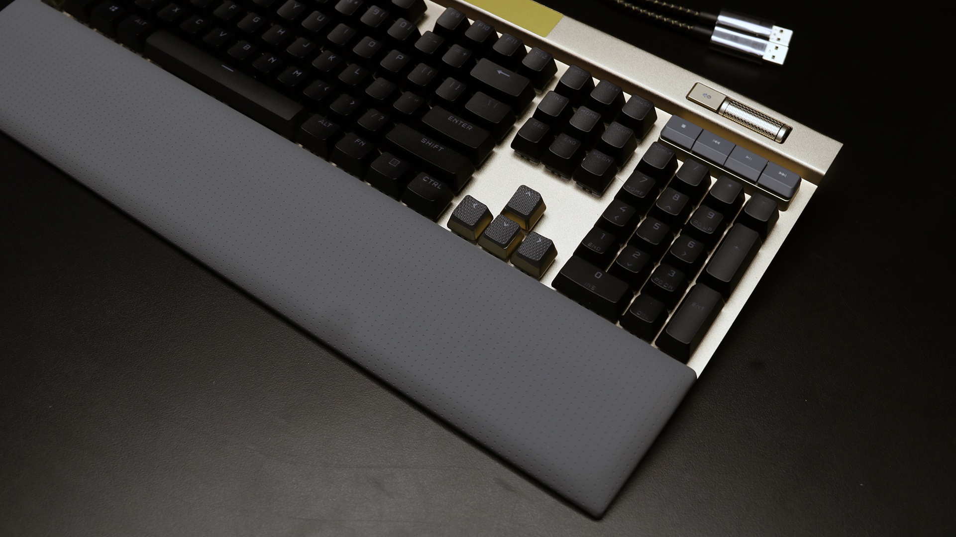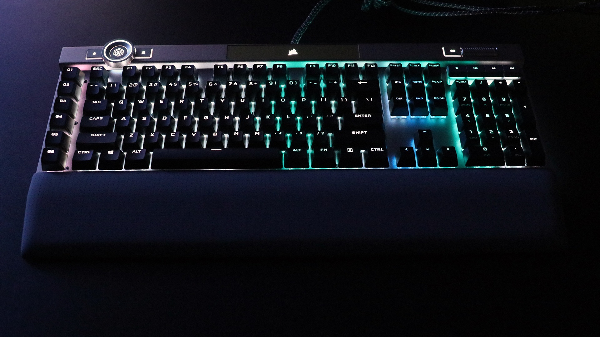 Cạnh đáy của bàn phím là một tấm nghỉ tay có nam châm, và Corsair cũng trang bị kèm một vài nút bấm đặc biệt cho các nhu cầu chơi game MOBA cũng như FPS.