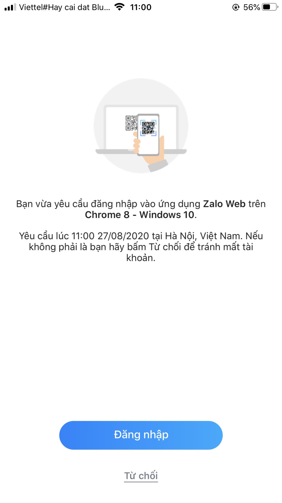 - Thử thoát và mở lại Zalo trên điện thoại, sau đó gửi lại yêu cầu đăng nhập