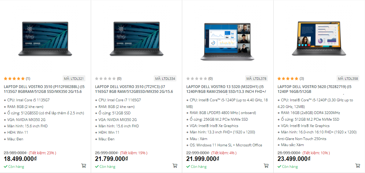 Dòng laptop Dell Vostro giá bao nhiêu?