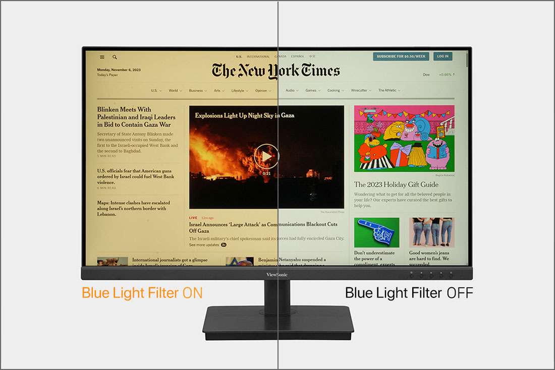 ViewSonic VA3209U-2K hiển nhiên được tích hợp các công nghệ bảo vệ mắt tiên tiến như Flicker-Free và Blue Light Filter. Công nghệ Flicker-Free loại bỏ đi tình trạng nhấp nháy của màn hình, giảm bớt mỏi mắt trong suốt quá trình sử dụng màn. Blue Light Filter phần nào giảm bớt, bảo vệ mắt khỏi tác hại của lượng ánh sáng xanh phát ra từ màn hình, giảm thiểu các nguy cơ mắc bệnh về mắt.