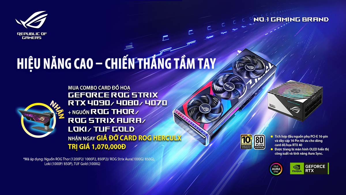 Mua combo card đồ hoạ ROG STRIX RTX ™ 4090/ 4080/ 4070 + nguồn ROG/ ROG STRIX/ TUF GAMING nhận ngay quà chất
