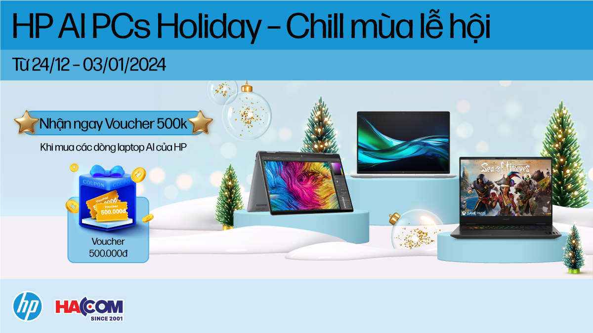 Khi mua các sản phẩm Laptop HP AI có trong trương trình sẽ được giảm giá 500.000đ trực tiếp vào hóa đơn.