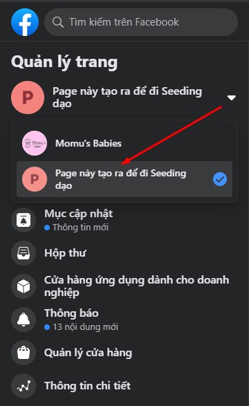 Chọn Fanpage bạn muốn đổi tên