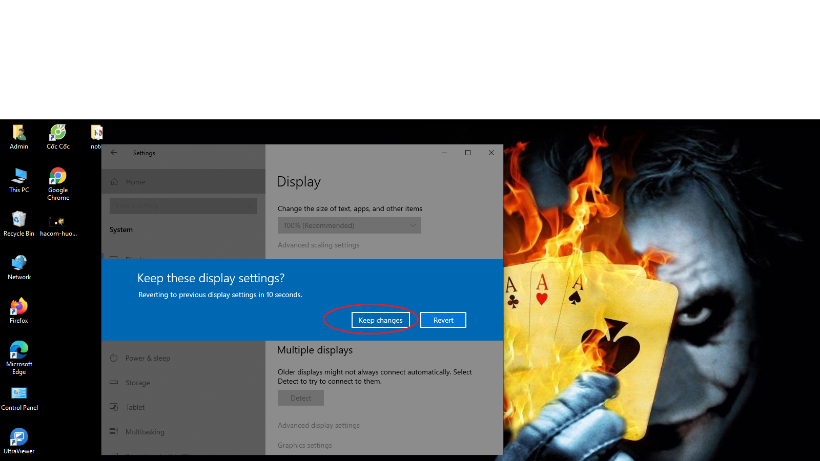 Bước 3: Cửa sổ thông báo Keep these display setting hiển thị, bạn chọn Keep changes cho lựa chọn thay đổi của mình.