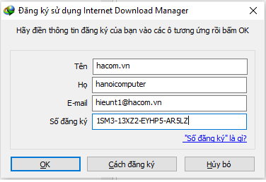 Để nhập Key IDM bạn cần truy cập vào ứng dụng>> Chọn mục Đăng ký>> Điền thông số vào bảng: