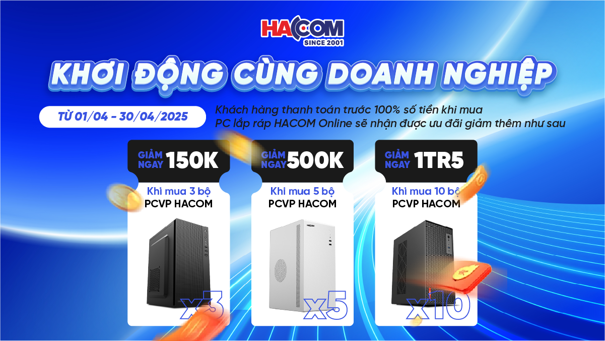 - Mua 3 bộ PCVP HACOM giảm ngay 150.000đ tổng đơn hàng