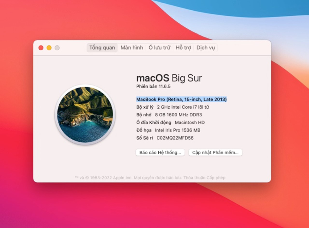+ Vào Giới thiệu về máy Mac này để kiểm tra CPU, RAM, ổ cứng SSD, và card đồ họa. Ví dụ, một chiếc MacBook Pro 2020 với chip M1, RAM 8GB, SSD 256GB phù hợp cho công việc văn phòng và chỉnh sửa nhẹ.