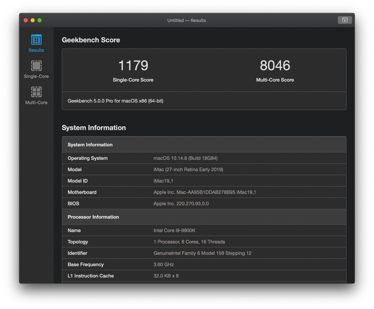 + Tải phần mềm Geekbench 5 để đo điểm hiệu năng CPU đơn nhân và đa nhân. So sánh kết quả với các mẫu MacBook cùng dòng trên trang Geekbench Browser.