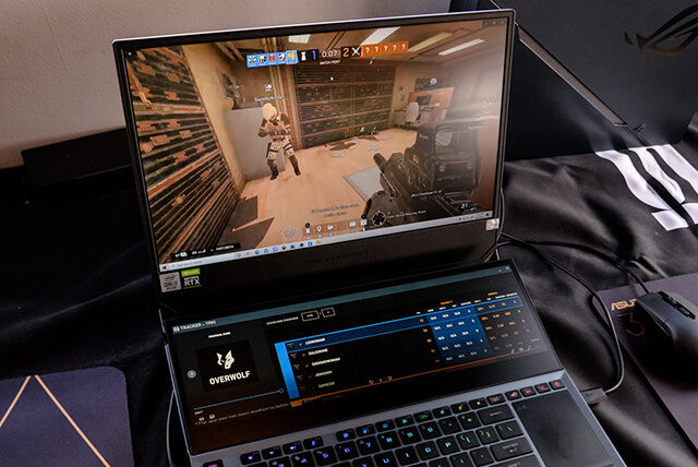 Bên cạnh đó bản thân ASUS đã phát triển ứng dụng Overwolf để đồng bộ và tối ưu với các trò chơi được hãng chọn như Fortnite, Liên Minh Huyền Thoại và Counter-Strike: Global Offensive để tương thích với ScreenPad Plus của ASUS ROG Zephyrus Duo 15.
