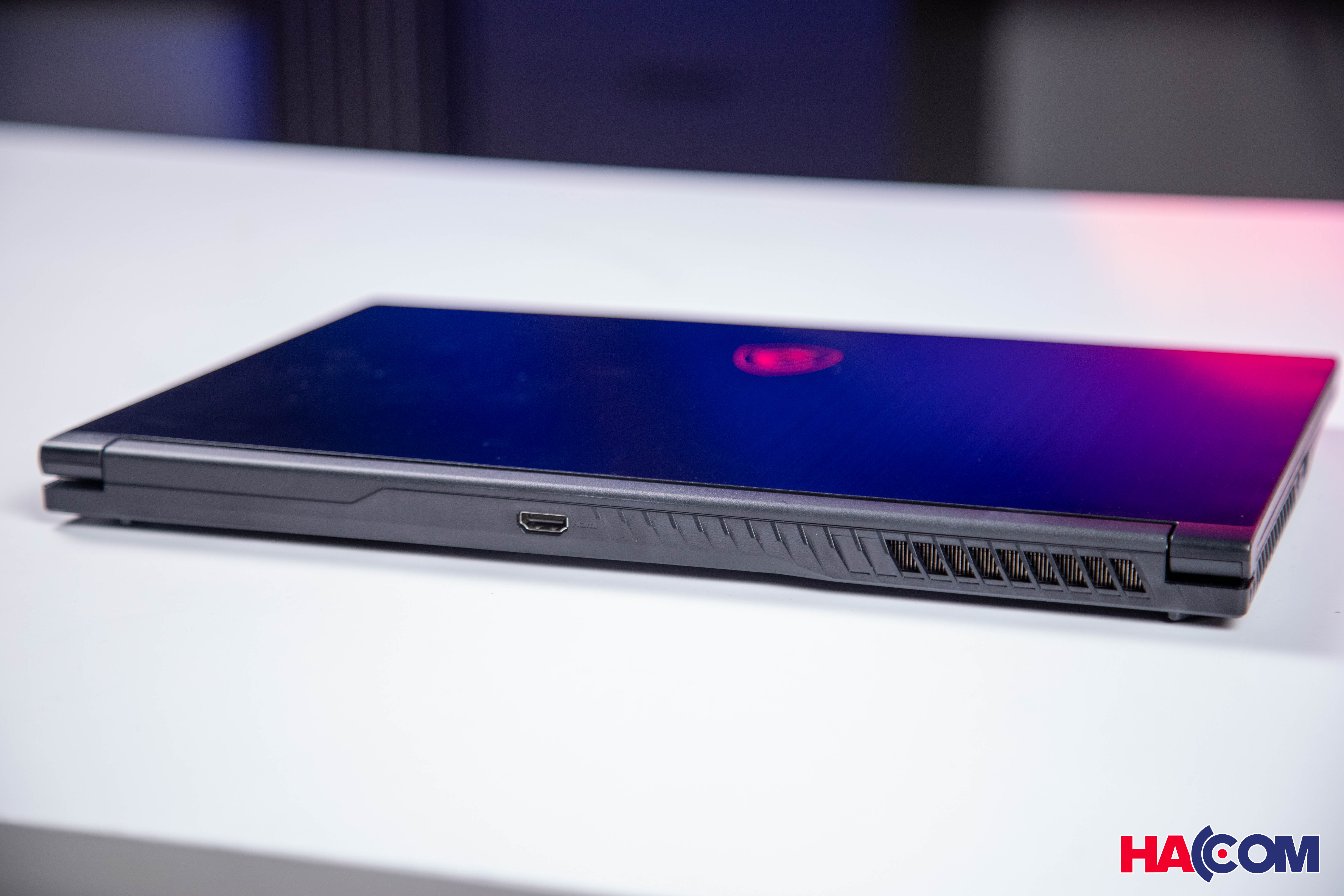 - Vỏ máy được làm hoàn toàn bằng kim loại nhôm mặt ngoài và mặt bàn phím, tạo cảm giác chắc chắn và sang trọng. Logo rồng đỏ đặc trưng của MSI được in chìm giữa nắp máy, tạo điểm nhấn thu hút ánh nhìn. Điểm đặc biệt nữa là dưới phần thông gió của máy, có một hình chữ X được ẩn, tạo nên một thiết kế độc đáo và cuốn hút.