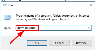 - Bước 1: Nhấn Windows + R để mở cửa sổ lệnh Run, sau đó nhập devmgmt.msc vào ô đường dẫn rồi nhấn Enter.