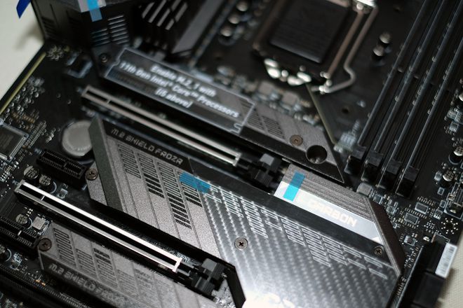 Có tổng cộng 3 khe M.2, trong đó có một khe tương thích với Lightning Gen 4, đạt tốc độ Gen 4x4 và các khe còn lại có tốc độ 3x4. Toàn bộ các khe M.2 đều được che bởi tản nhiệt M.2 Shield Frozr của MSI.
