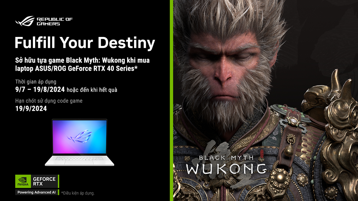 Khách hàng sau khi mua sản phẩm được áp dụng trong chương trình vui lòng thực hiện các bước đăng ký đổi quà tại: https://rog.asus.com/event/blackmyth-wukong-bundle/laptop/