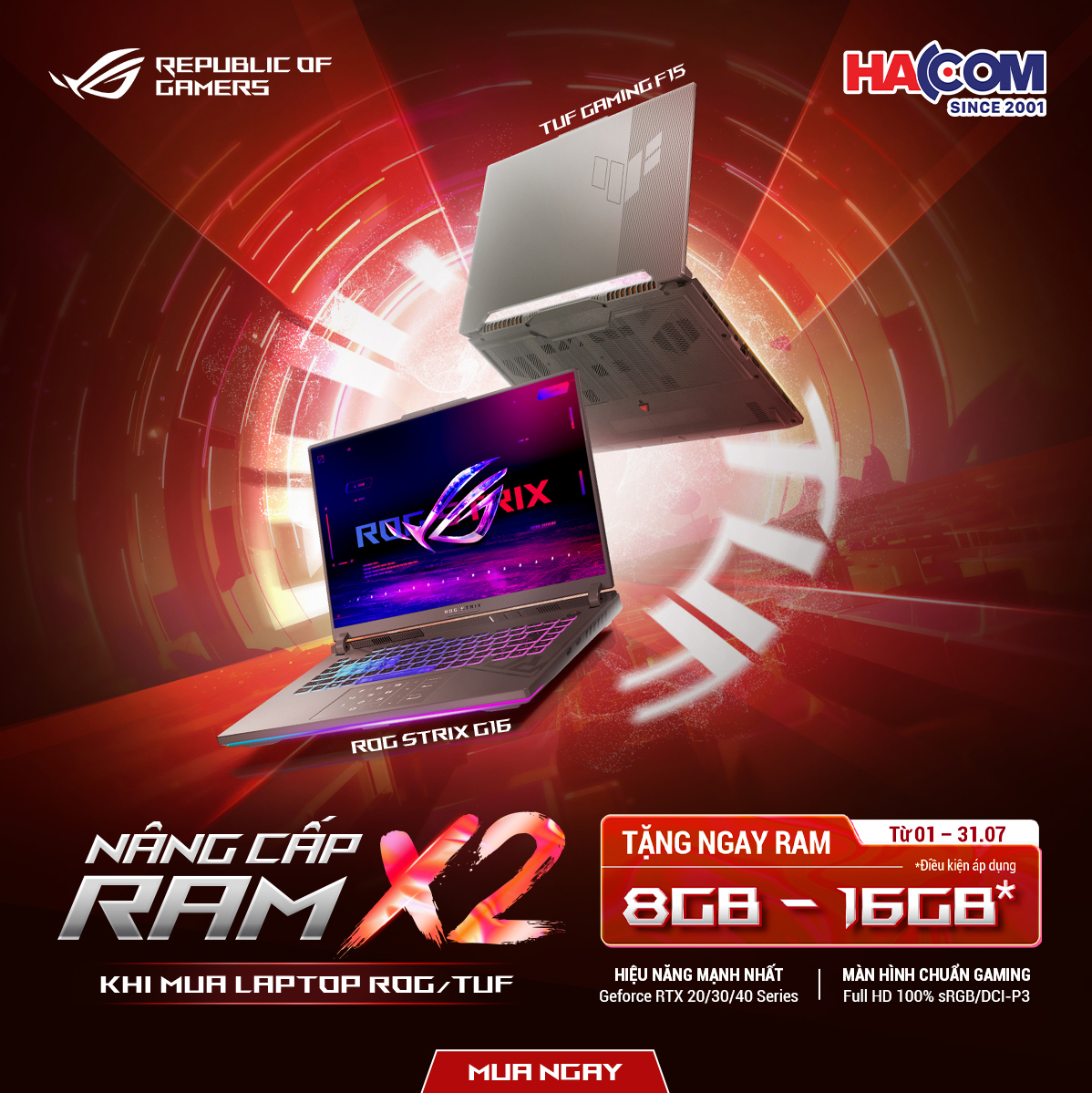 Trang chủ>Tin tức>Khuyến mại PC>Nâng cấp RAM x2 khi mua Laptop TUF tại HACOM
