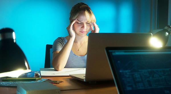 - Ảnh hưởng đến mắt: Mắt bạn chảy nước mắt liên tục, bị khô hay có cảm giác rát mắt do phải tập trung nhìn màn hình không đủ ánh sáng và ít khi chớp mắt. Nếu bạn làm việc nhiều giờ trên máy tính, bạn sẽ gặp tình trạng mắt mỏi, mất khả năng tập trung.