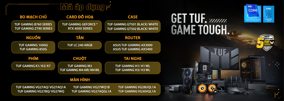 - Bo mạch chủ: TUF GAMING B760 series/ Z790 series