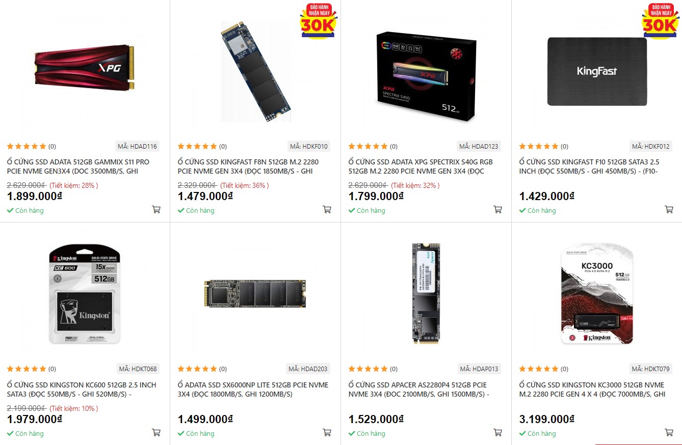 Vậy ổ cứng ssd 512Gb giá bao nhiêu?