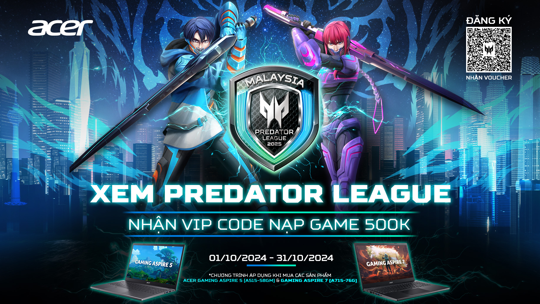 - Tất cả khách hàng mua sản phẩm Gaming Aspire 5 và Gaming Aspire 7 đăng ký nhận game code trên website chương trình
