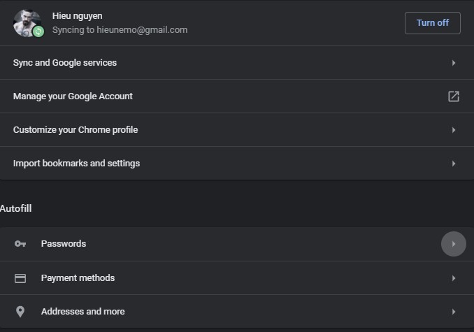 Trong mục Autofill, click vào mục Password