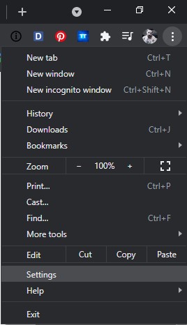 Trên trình duyệt, click vào biểu tượng 3 chấm cạnh cạnh avatar ở góc phải màn hình > chọn Settings.