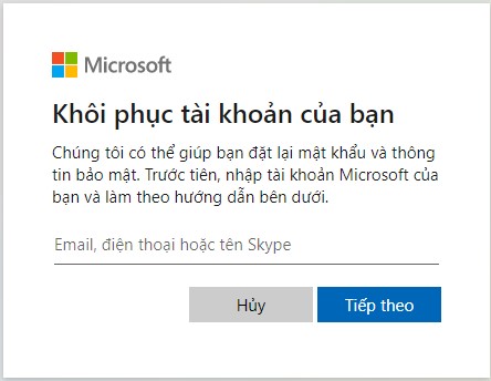 Bước 1 : Dùng điện thoại, hoặc máy tính khác truy cập vào đường link : https://account.live.com/resetpassword.aspx
