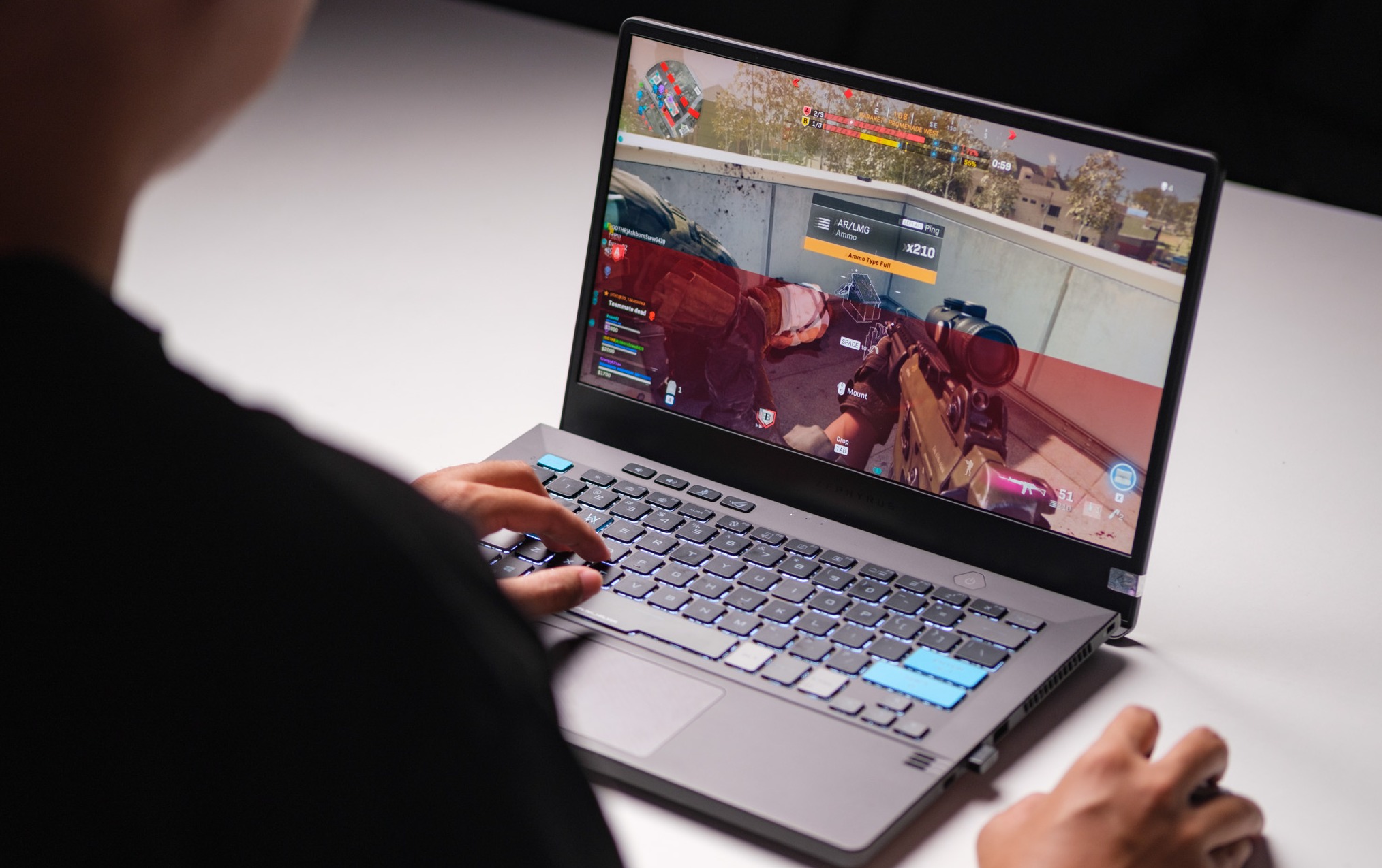 Một số thiết bị sử dụng kiểu màn hình này của ASUS ROG có thể kể tới như dòng Zephyrus G14 hay ROG Zephyrus S17. Lấy ví dụ về chiếc Zephyrus G14 mà mình từng có dịp được trải nghiệm. Máy có tuỳ chọn màn hình WQHD, độ phủ màu DCI-P3 đạt 100% và tần số quét 120Hz. Nhìn chung, đây là tuỳ chọn màn hình khá hài hoà khi đảm bảo được độ sắc nét cần thiết, vừa cung cấp đủ độ mượt mà cho việc chiến các tựa game FPS.
