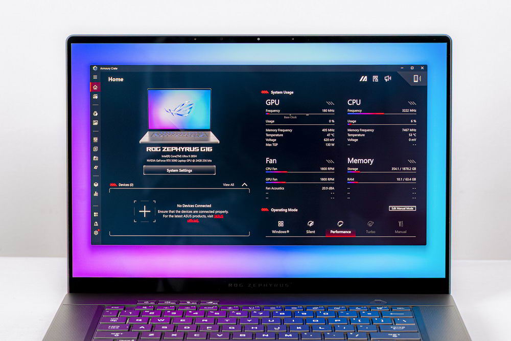 ROG Zephyrus G16 2025 còn mang đến tùy chọn cấu hình RAM lên đến 64GB cho phép xử lý các tác vụ đặt thù yêu cầu nhiều bộ nhớ, đa nhiệm hiệu quả và làm việc trong nhiều giờ mà không gặp tình trạng giật, lag do thiếu bộ nhớ. Cùng với các tùy chọn CPU và GPU cao cấp, ROG Zephyrus G16 là lựa chọn hoàn hảo những ai cần laptop gaming mạnh mẽ nhưng vẫn mỏng nhẹ.