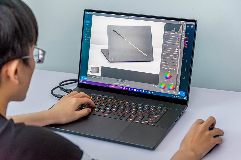 Bên cạnh công nghệ chống xé hình G-Sync và tốc độ phản hồi siêu nhanh 0.2ms cho hình ảnh chuyển động rõ nét, màn hình của máy cũng đạt chuẩn Pantone với DeltaE < 1 giúp đảm bảo nội dung luôn chân thực đến đừng khoảnh khắc. Đây chính là màn hình hoàn hảo cho các game thủ và nhà sáng tạo nội dung. Kết hợp cùng màn hình đẹp, ROG Zephyrus G16 còn được trang bị hệ thống 6 loa cao cấp hỗ trợ âm thanh vòm Dolby Atmos®, mang đến trải nghiệm âm thanh sống động, chân thực – thuộc hàng tốt nhất trong thế giới laptop Windows hiện nay.