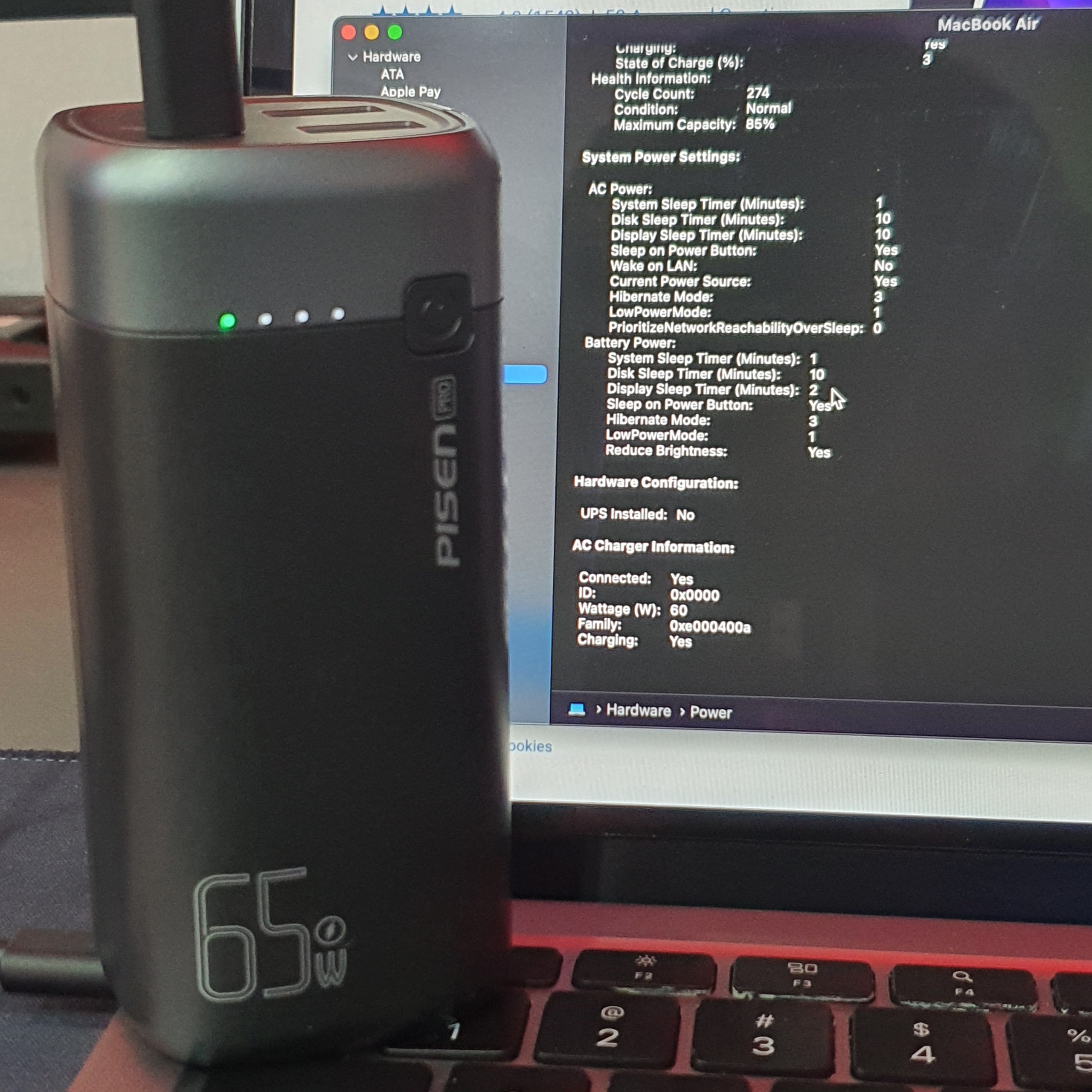 Mình thứ sạc cho Macbook Air M1 thì máy nhận sạc nhanh 60W, và với Samsung cũng hỗ trợ sạc nhanh 2.0 25W