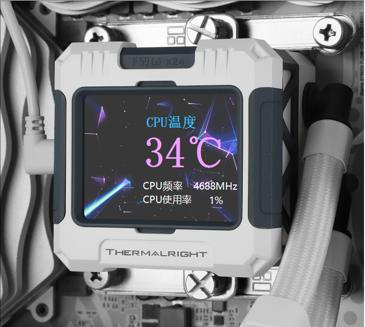 Tích hợp màn hình vuông 2.4 inch LCD IPS hiển thị sắc nét, chính xác, chân thực các thông tin nhiệt độ, tần số quét, hiệu năng CPU… Hỗ trợ thay đổi hình nền (backgroud) dễ dàng, nhanh chóng thể hiện cá tính cá nhân với nhiều định dạng khác nhau JPG, PNG, ảnh động GIF…